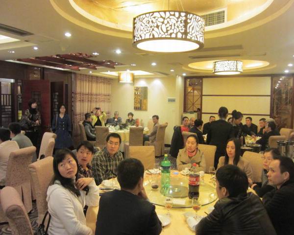 宴会上,会员间不熟悉的互赠名片深入了解,熟悉的便互拉家常聊聊近况,整场宴会的气氛都围绕在浓浓的乡情与亲切的乡音之中,为这即将到来的新春佳节营造出一片喜庆。宴会上谭会长与会员们进行了深入而广泛的交流和商讨,大家普遍认为今后商会可以每两个月搞一次小活动,内容和形式可以多样,主要是将会员聚集起来多联络乡情、多沟通工作,多交流信息,彼此增进了解的同时还可以互相学习取长补短。