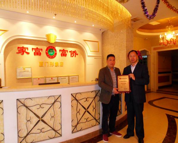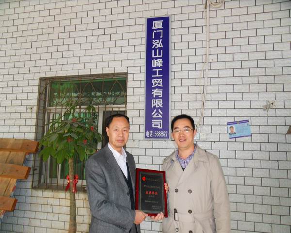 秘书长李吉华为“厦门泓山峰工贸有限公司” 董事长巫优洪授会员牌