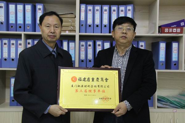 2017年1月16日,商会秘书长李吉华、专职人员张婷前往集美、同安等地走访会员企业,为会员送去换届大会的礼品及会员牌。