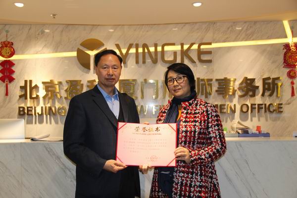 2月28日,商会秘书长李吉华、专职人员张婷走访了会员周金雨律师事务所,为其送去会员牌。
