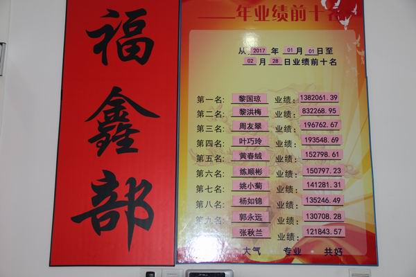 福鑫部年业绩前十榜