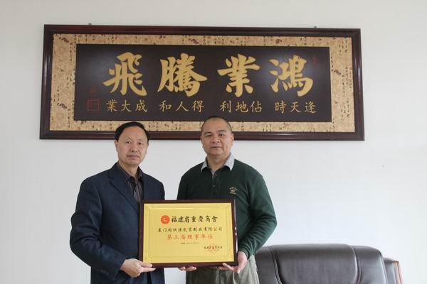 3月14日上午,商会秘书处秘书长李吉华带领专职人员张婷、张庆莲走访了理事会员企业——厦门同欣源包装制品有限公司,并为该公司送去第三届会员牌,并受到了总经理何伯芝夫妻的热情接待。