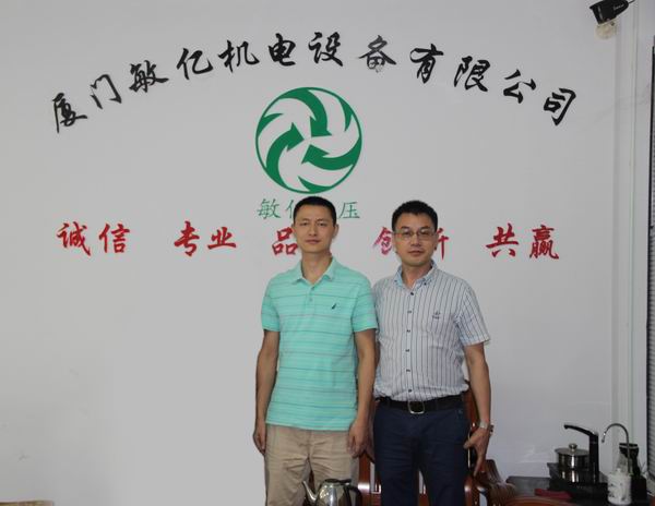 下午,我们一行到了厦门同安工业集中区建材园,徐国林总经理热情的接待了我们,总经理徐国林是四川自贡人,有着军人的冒险精神,目标明确,从部队转业之后就来到厦门开办了厦门敏亿机电设备有限公司。该公司是一家专业从事空气压缩机相关销售、售后、整厂空压机规划、管道设计施工、节能改造以及整机合同能源管理综合性服务公司。与上海斯可络压缩机有限公司合作,根据不同的用气情况为客户提供一级、超一级能效的压缩设备。以零损耗的后处理设备,整厂管路的优化,为客户提供一个系统节能解决方案。