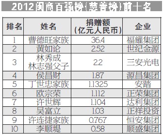 2012年闽商百强榜(慈善榜)前十名